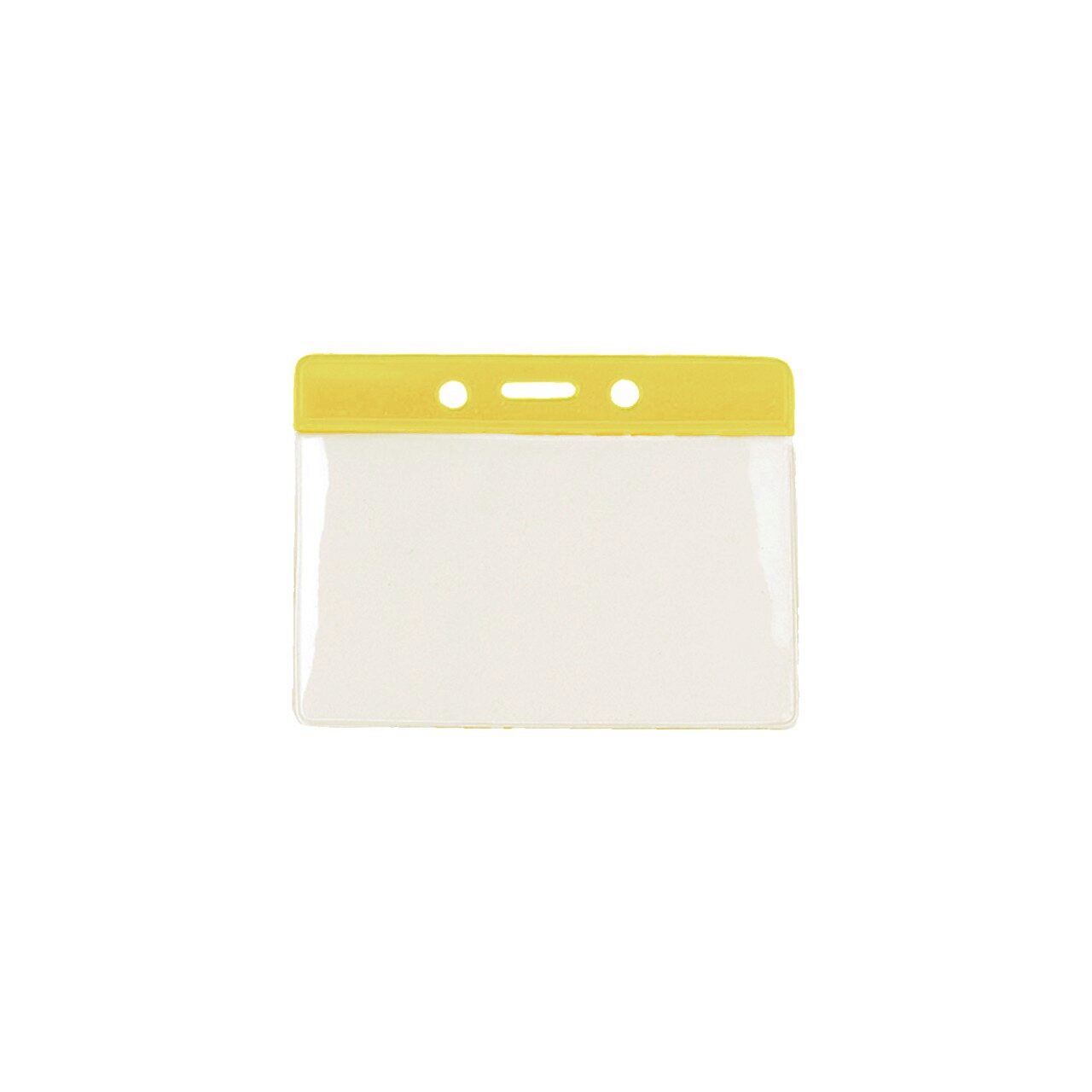 Portecuson orizontal cu bandă color pentru protecția ecusoanelor prevăzut cu bandă color în partea superioară. Pentru prindere, se pot atașa clipuri simple sau cu fir retractabil, lănțișoare sau benzi textile cu carabină.