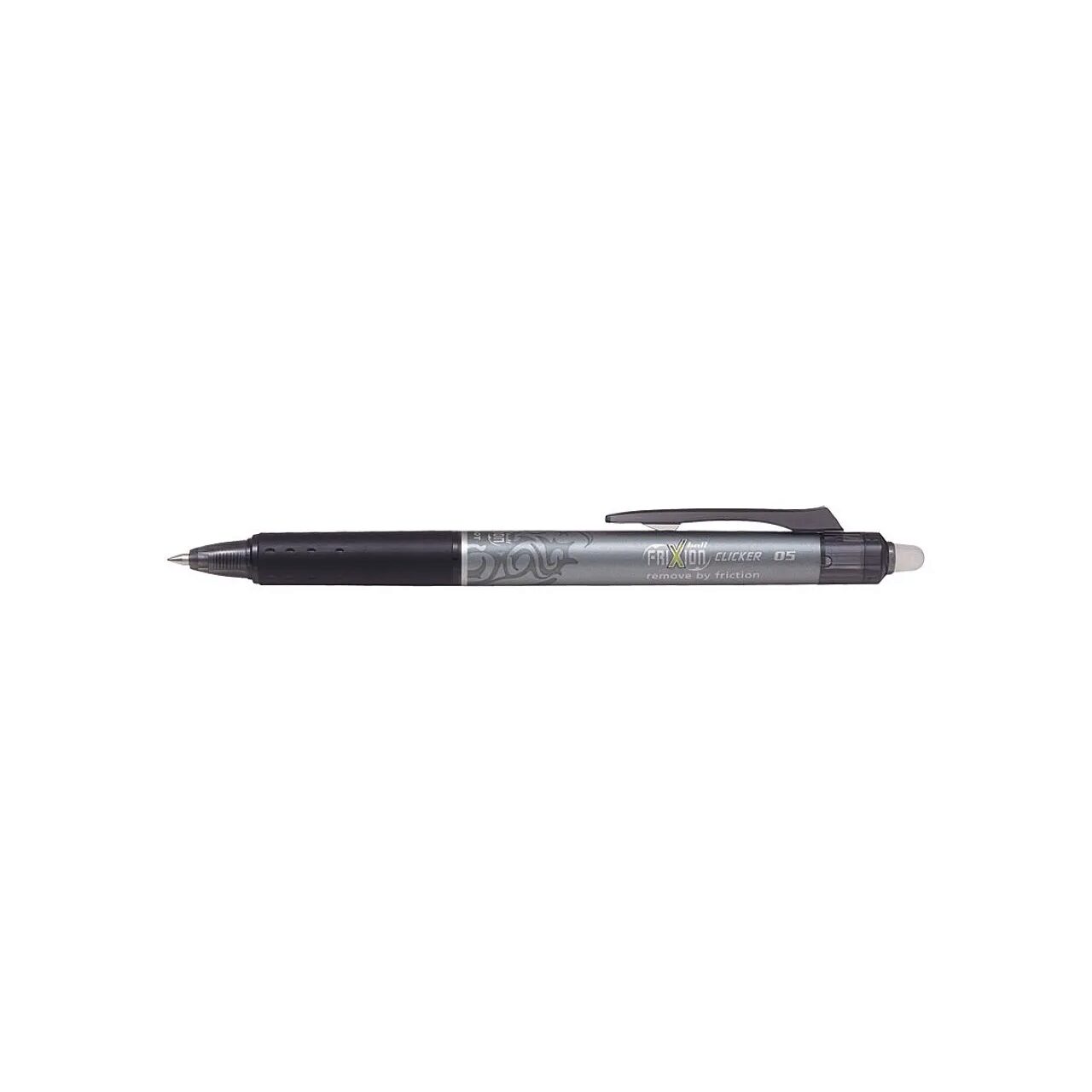 Şterge curat, fără a lăsa urme folosind radiera care prin frecare generează căldură. Utilizează aceaşi cerneală pentru a scrie şi rescrie. Folosind o nouă cerneală, patentată de PILOT, FriXion Ball Clicker continuă tradiţia de a revoluţiona scrisul. Un stil tânăr, un corp tatuat şi 7 culori incredibile definesc pixul care a cucerit lumea. A nu se folosi pentru semnături sau scrierea pe documente legale, pe colile de examen sau alte documente unde este necesară folosirea cernelei permanente.