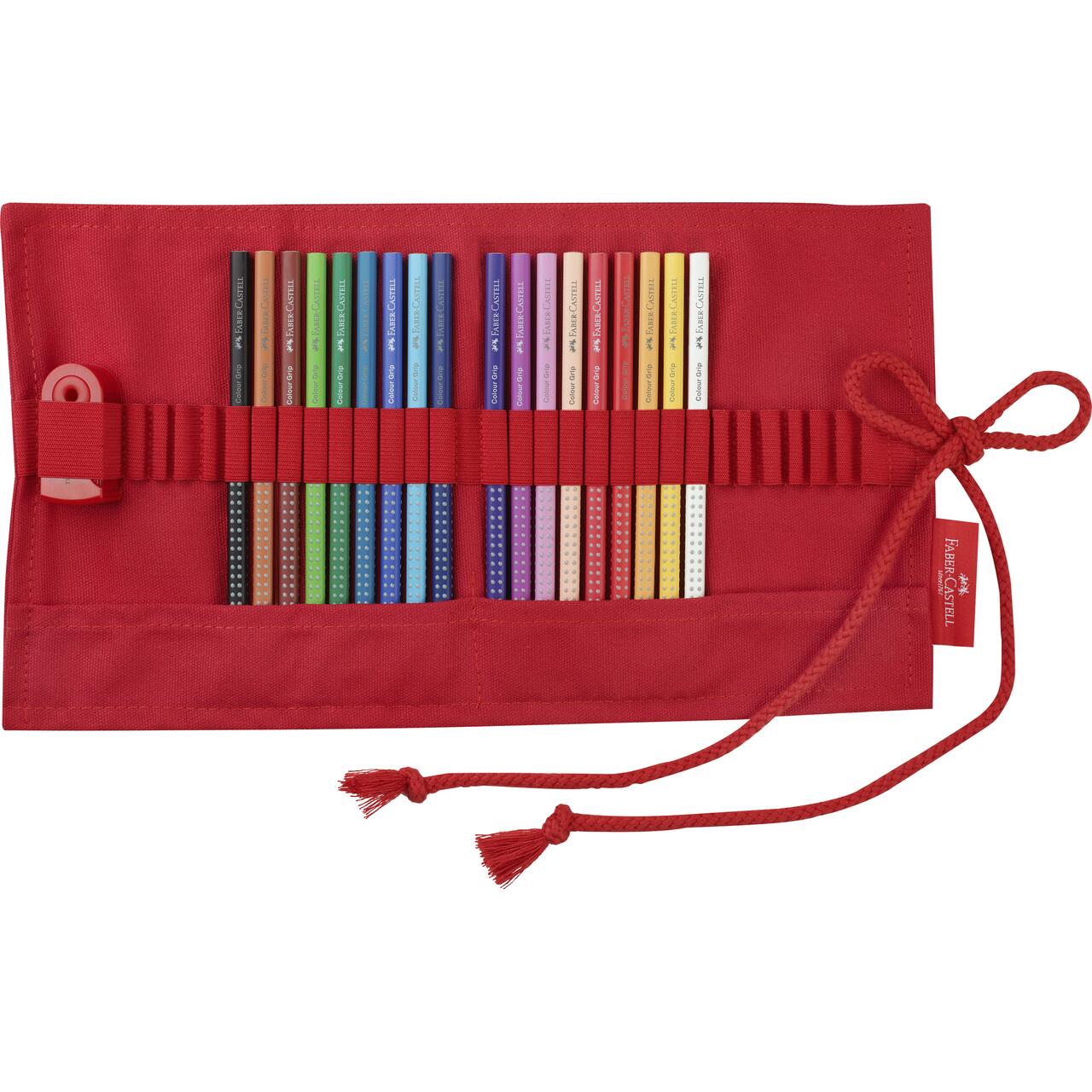Rollup textil cu 18 de creioane colorate Grip, cu ascutitoare Sleeve mini. Creion colorat cu zona de prindere patentata anti-alunecare. Forma ergonomica. Asezare neteda a culorii. Corpul creioanelor acoperit cu vopsea eco, pe baza de apa. Tehnologia speciala de lipire a minei previne ruperea acesteia. Corp din lemn din surse sustenabile.