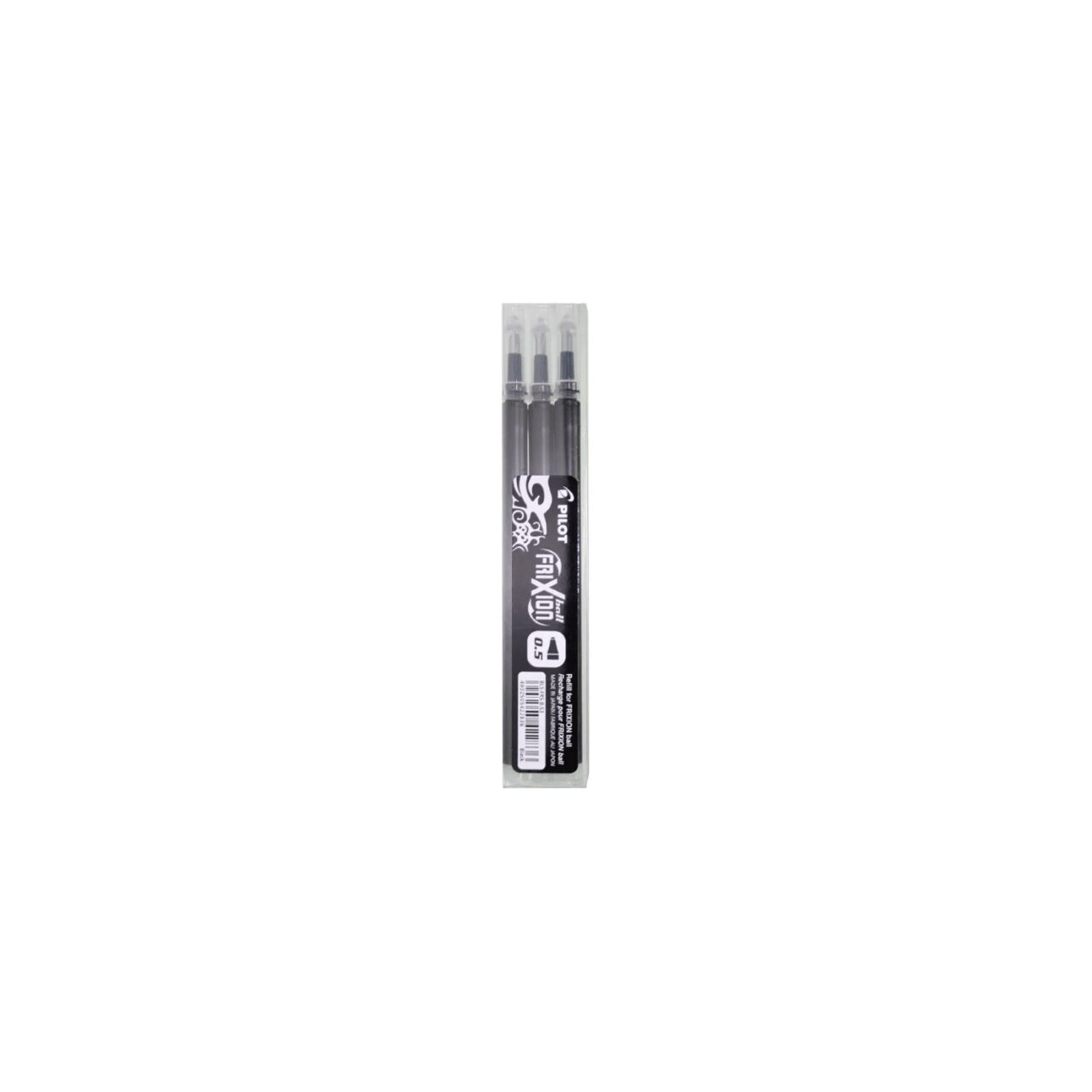 Set 3 rezerve roller Frixion Ball Pilot 0.5 mm varf fin cu culoare Negru