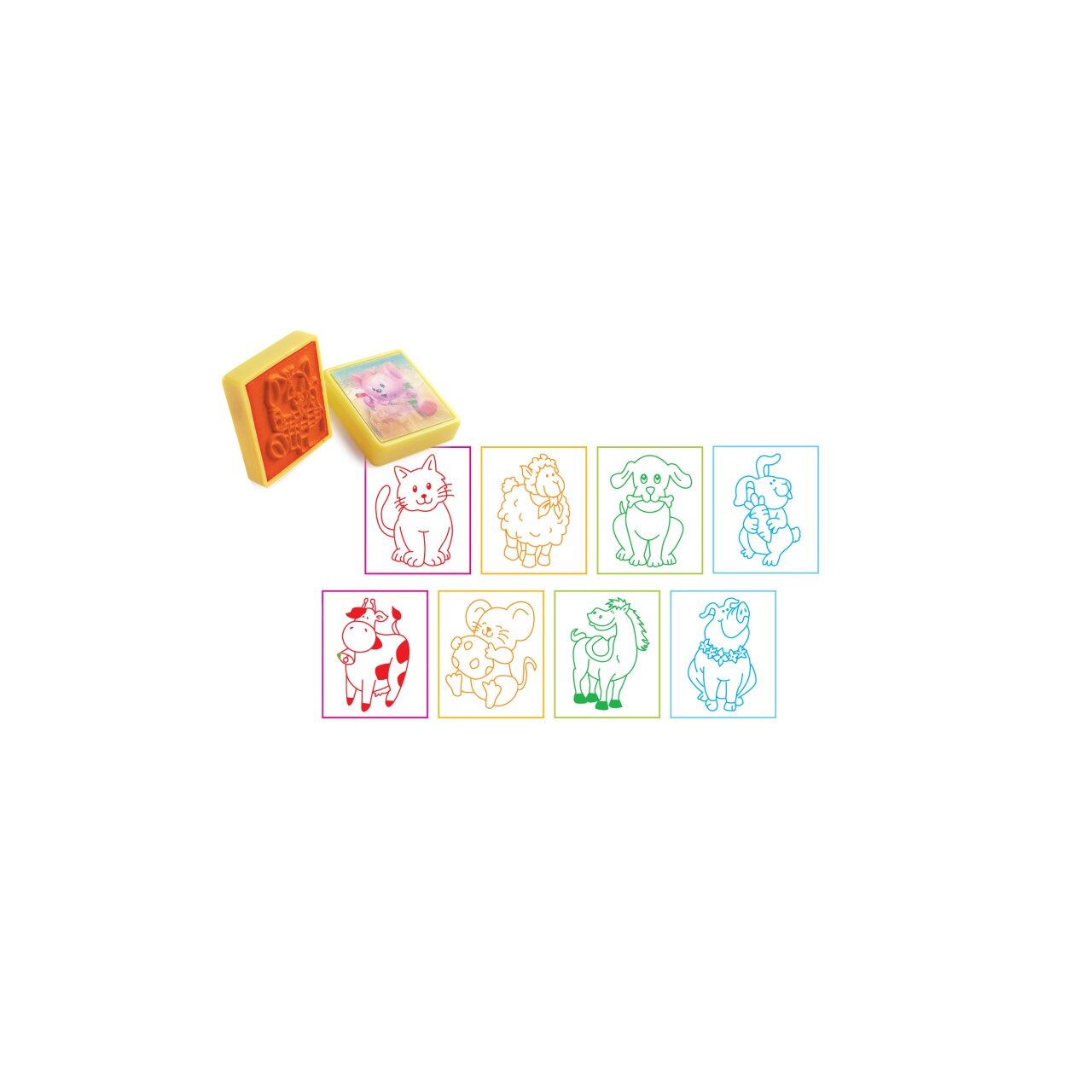 Stampilele sunt cu 8 modele de animale: pisica, oaie, catel, iepure, vaca, soricel, magar, purcel