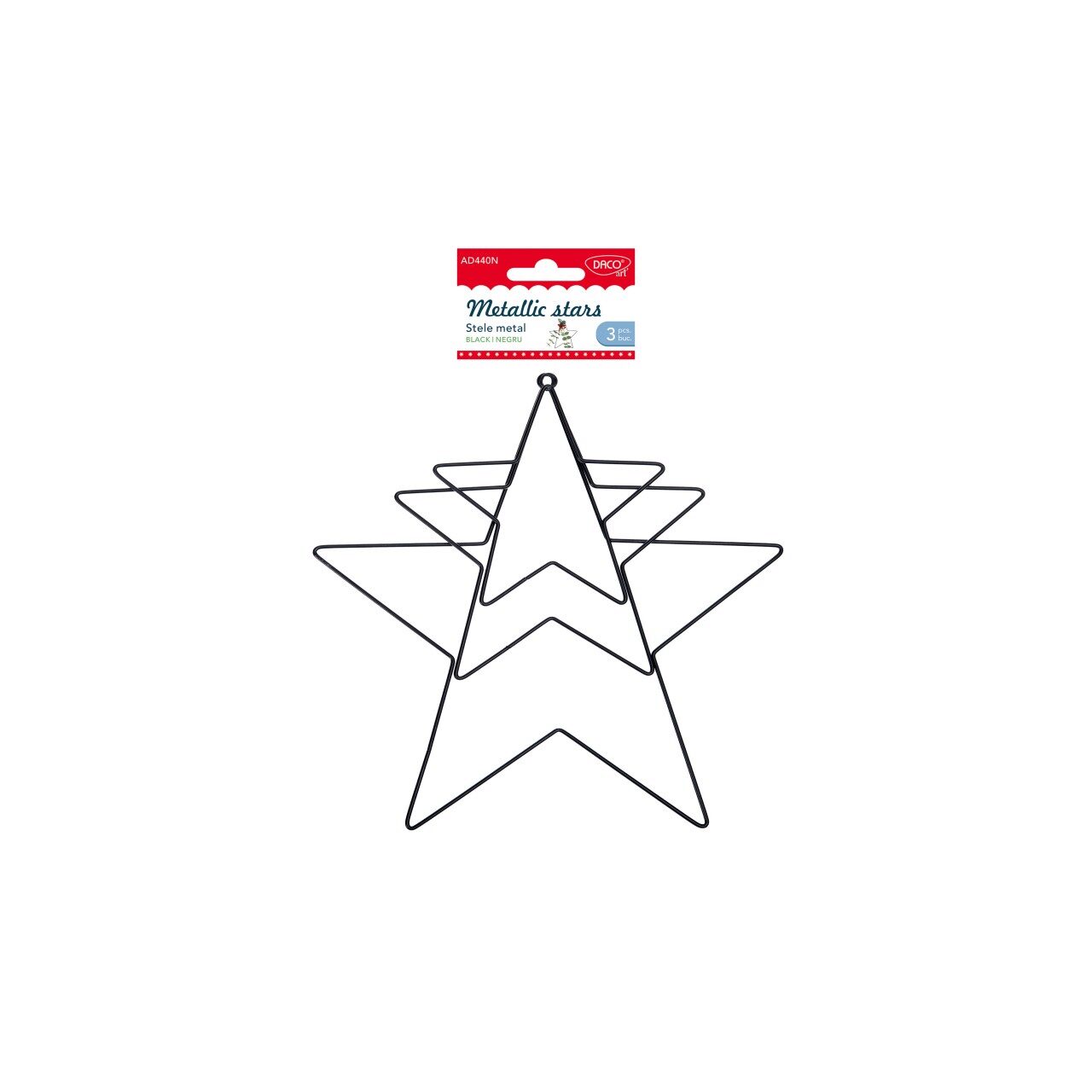 Setul de accesorii craft "Stele metal" DACOart este perfect pentru a aduce o notă de strălucire și eleganță în proiectele tale creative. Cu dimensiuni variate și posibilități de decorare nelimitate, aceste stele metalice de culoare neagră pot fi integrate într-o gamă variată de proiecte pentru a adăuga un farmec special și un aspect sofisticat. Le poți lasă așa cum sunt sau le poți decora cu flori și alte accesorii. Oricum le-ai folosi, cu siguranță vor fi piesa de rezistență a proiectului.