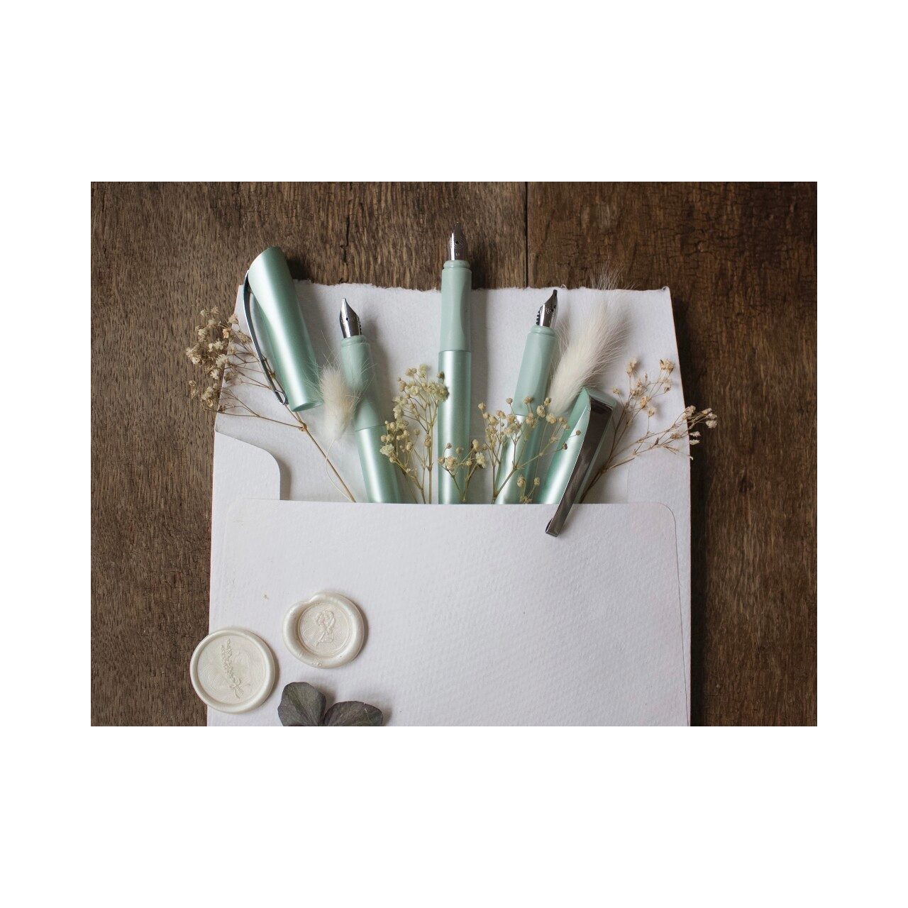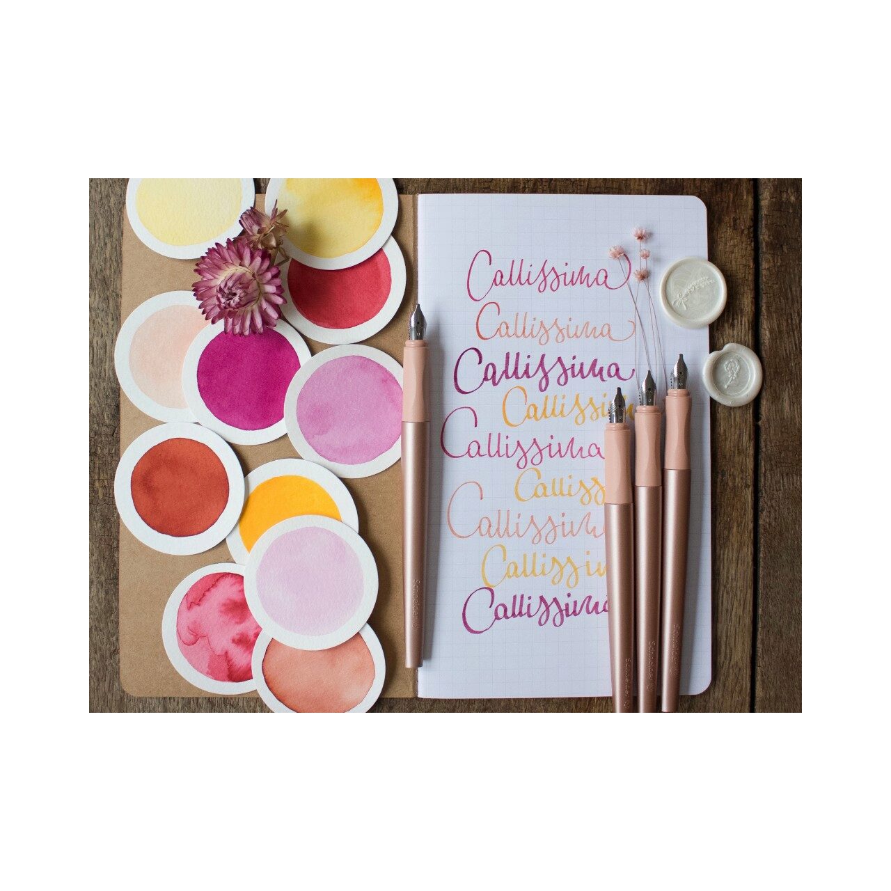 - Stilourile sunt echipate cu patroane de cerneală: "Bermuda Blue" — Callissima Mint) și "Apricot" — Callissima Apricot
