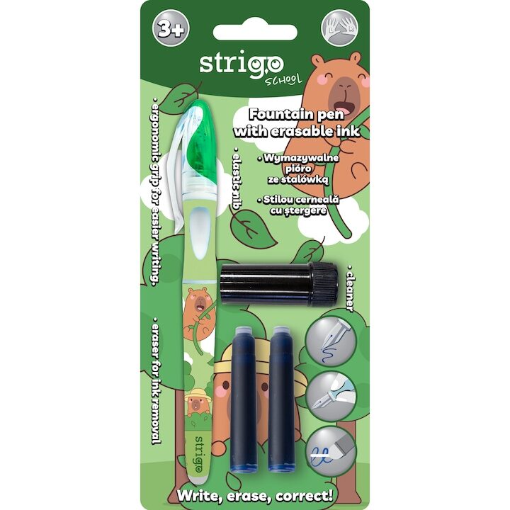 Cel mai nou stilou cu stergere prin frictiune de la Strigo este conceput pentru a satisface nevoile individuale ale elevilor.Stilourile cu stergere prin frictiune sunt perfecte pentru invatarea scrisului de mana, pentru ca permit o scriere precisa si eleganta, facilitand totodata stergerea erorilor fara a lasa urme vizibile, taieturi ori modificari.