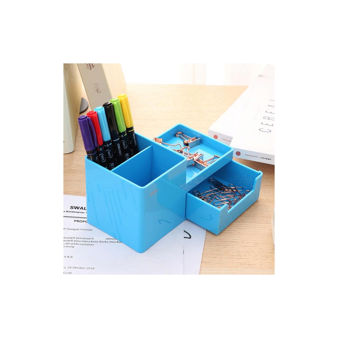 Suport Birou 3 Compart+Sertar Bleu Deli