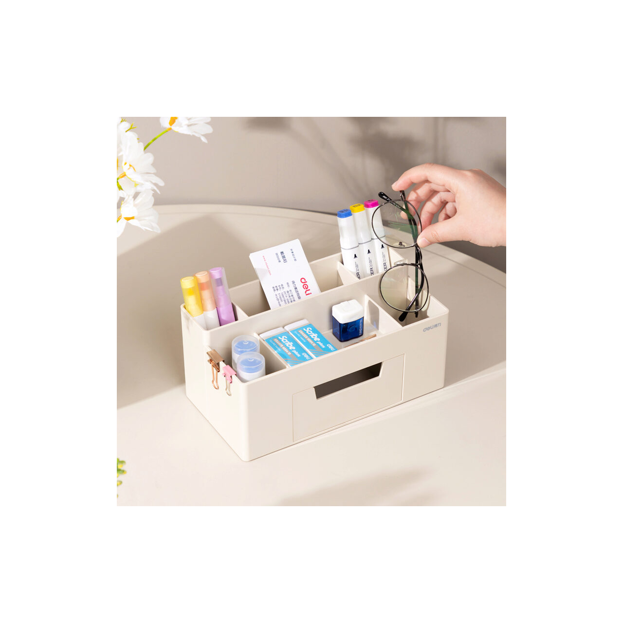 Suport Birou 7 Compartimente + Sertar Alb Deli
