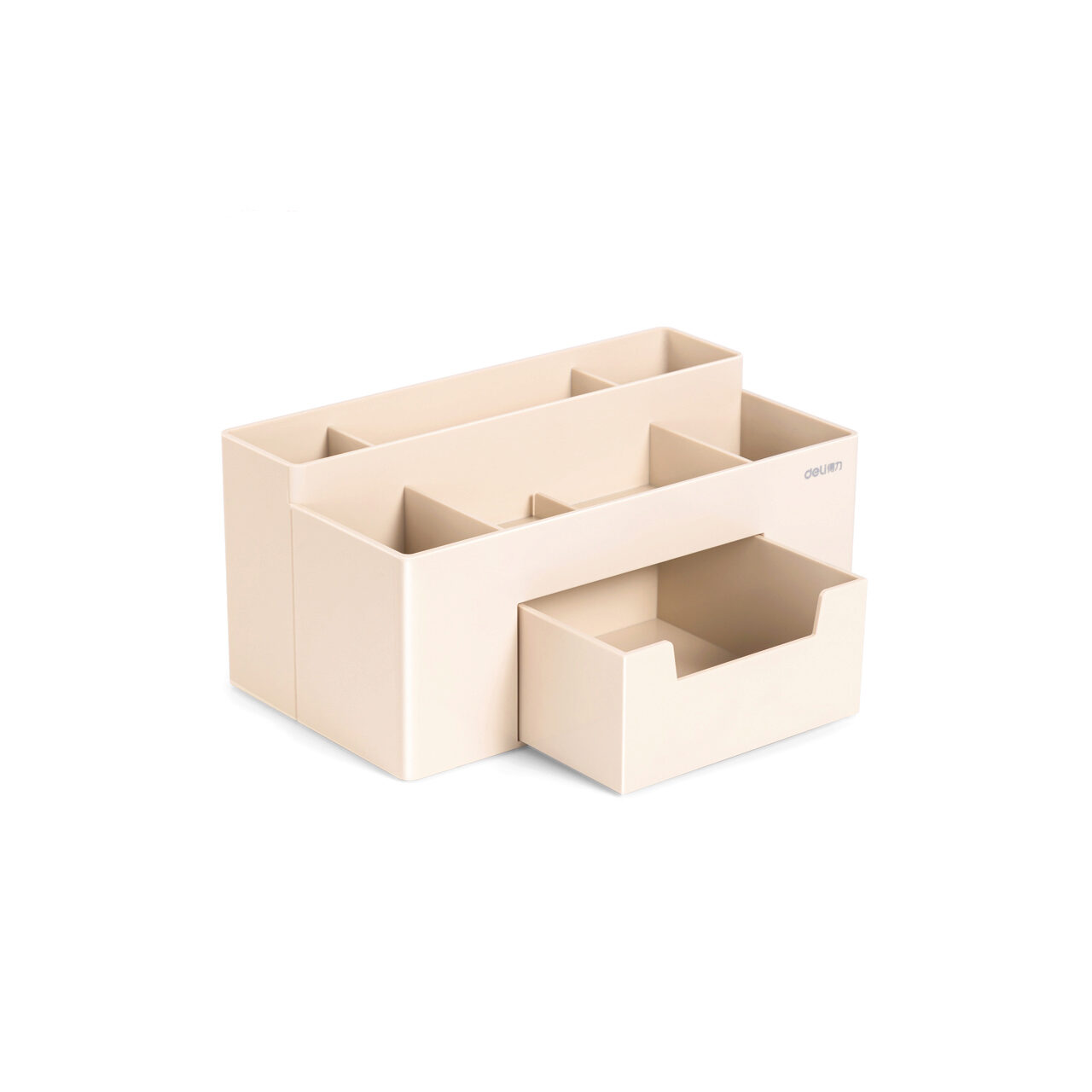 Suport pentru instrumente de scris, cu 7 compartimente si un sertar. Dimensiune: 224x121x104mm.