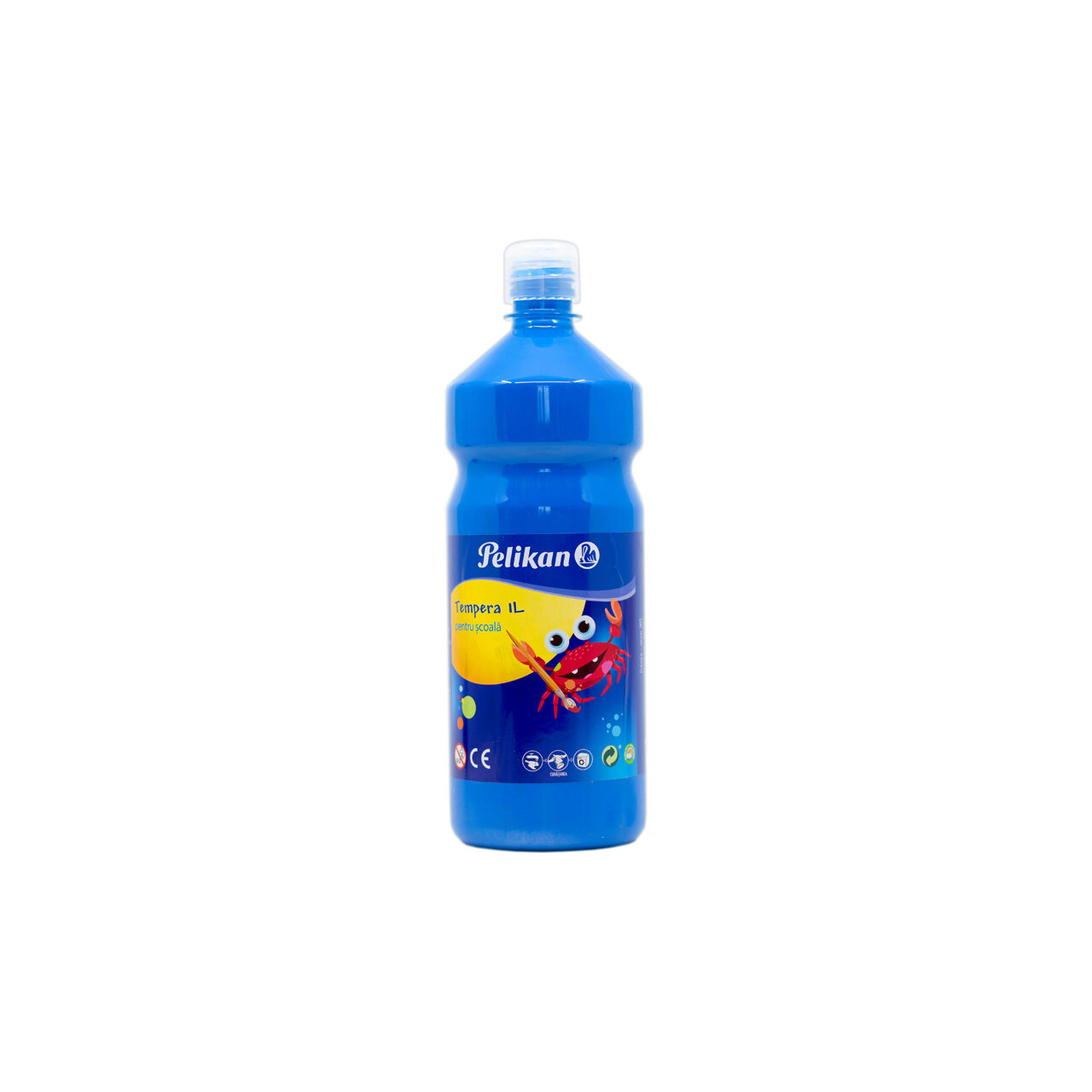 Acuarele Tempera, Pelikan, in flacon de 1 litru cu dop special pentru dozare precisa, vopsea pe baza de coloranti naturali, formula ecologica si non-toxica, culoare azuriu.