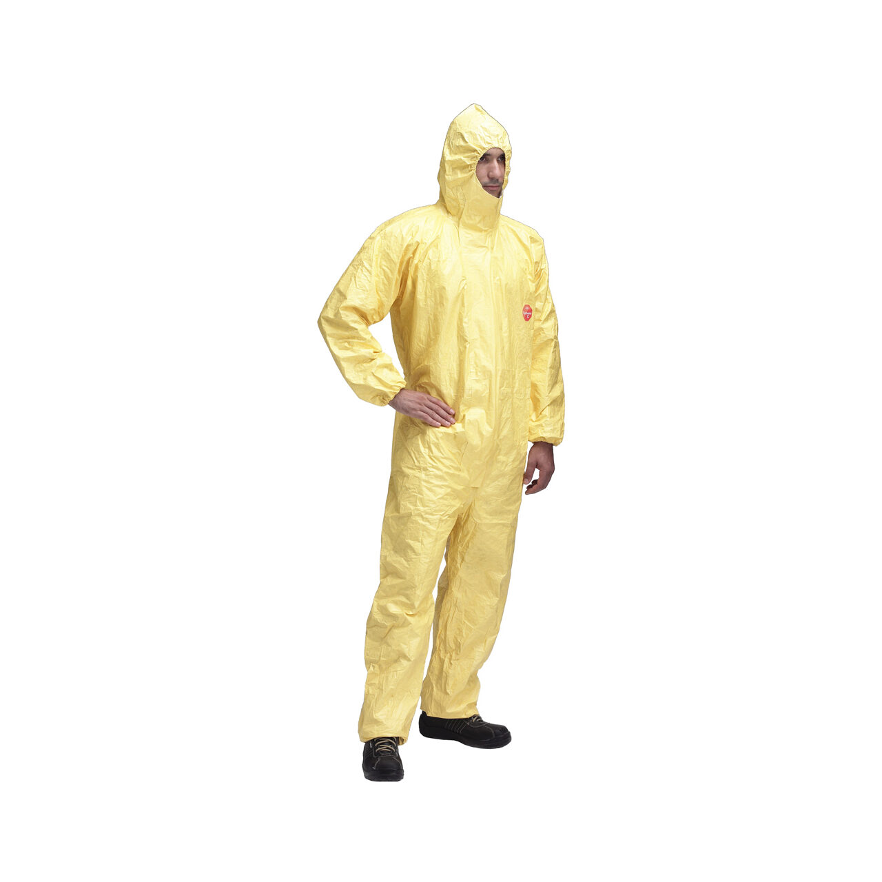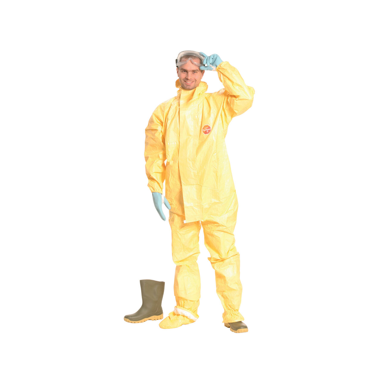 Tychem 2000 C grosime de 83 g / m2 acoperită cu polimer Tyvek (R) cu salopetă de protecție galbenă, antistatică, cu glugă, cu protecție pentru picioare * protejează împotriva prafului și particulelor radioactive de orice dimensiune a particulelor, rezistente la substanțele chimice anorganice, dezinfectanți generali și protecție împotriva microorganismelor și sânge de până la 2 bari * rezistență la abrație și rezistență la tracțiune extrem de ridicate, talie cauciucată, față, încheieturi și glezne, capac dublu cu fermoar cu bandă autoadezivă, benzi de siguranță, curea flexibilă pentru degetul mare * protecția pentru picioare poate fi purtată în interiorul încălțămintei, cizme duble pentru ghete,