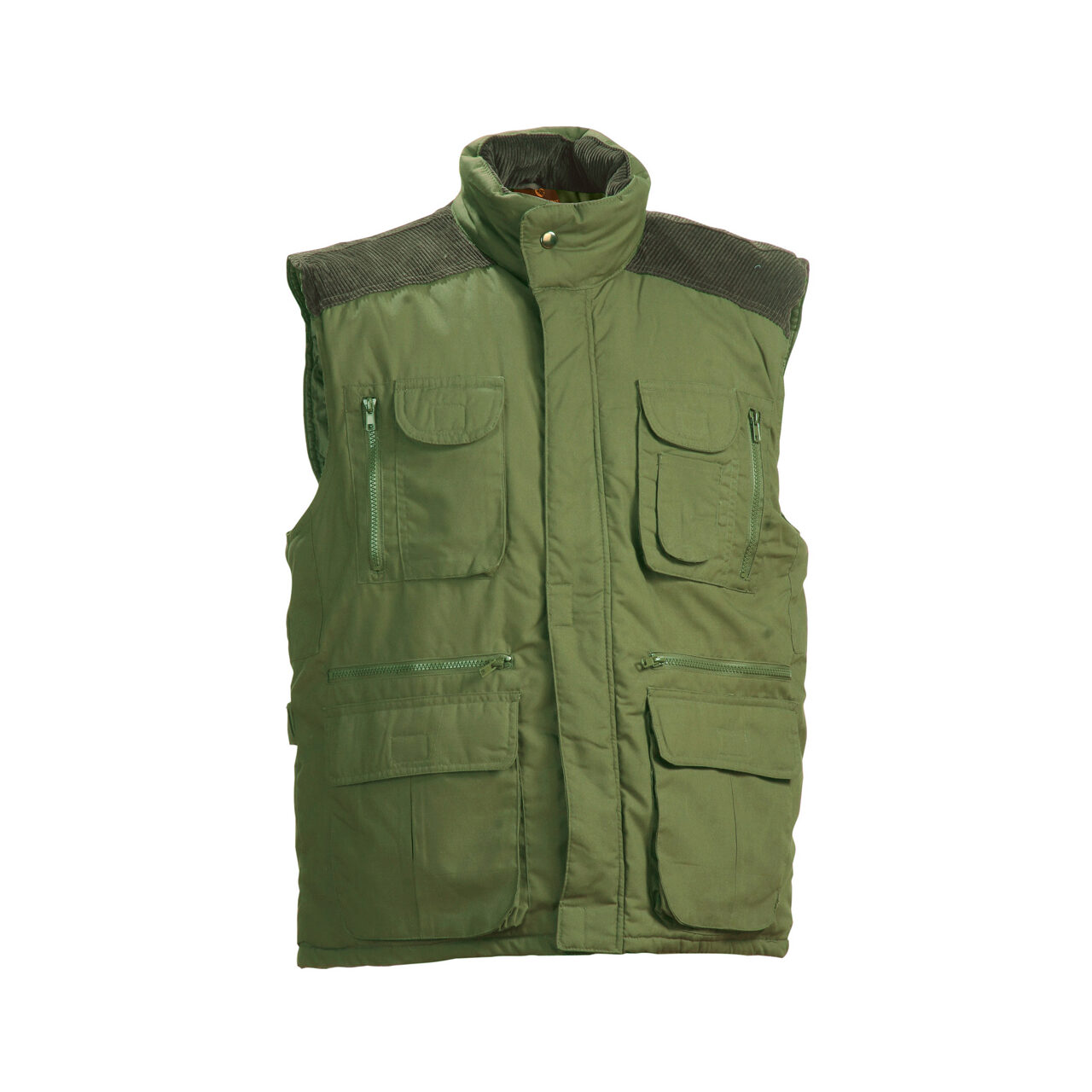 vesta de vânătoare verde * 35% bumbac, 65% material poliester * piele / guler din piele de căprioară / șnur * Căptușeală din poliester de 180 g / m2, interior confortabil din poliamidă